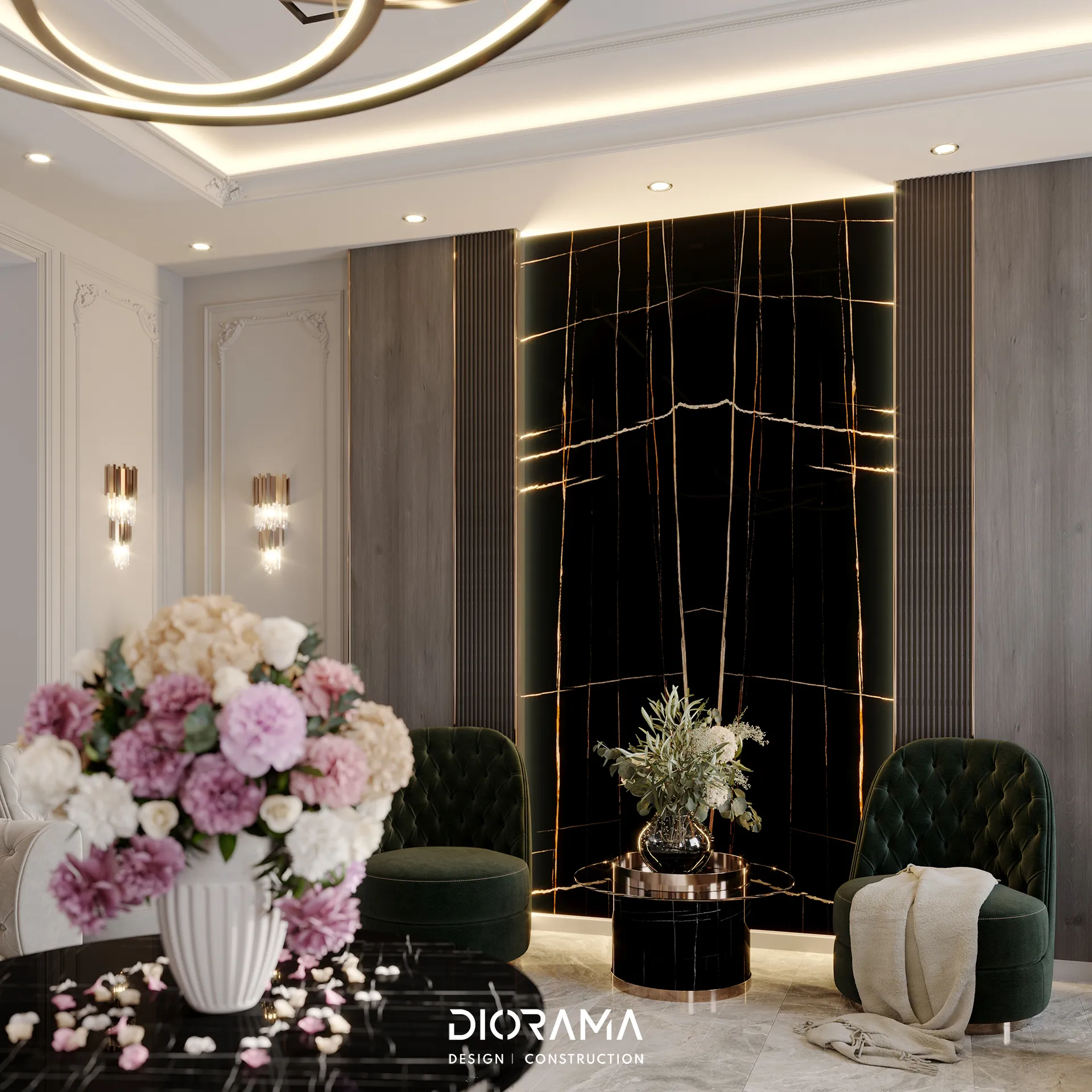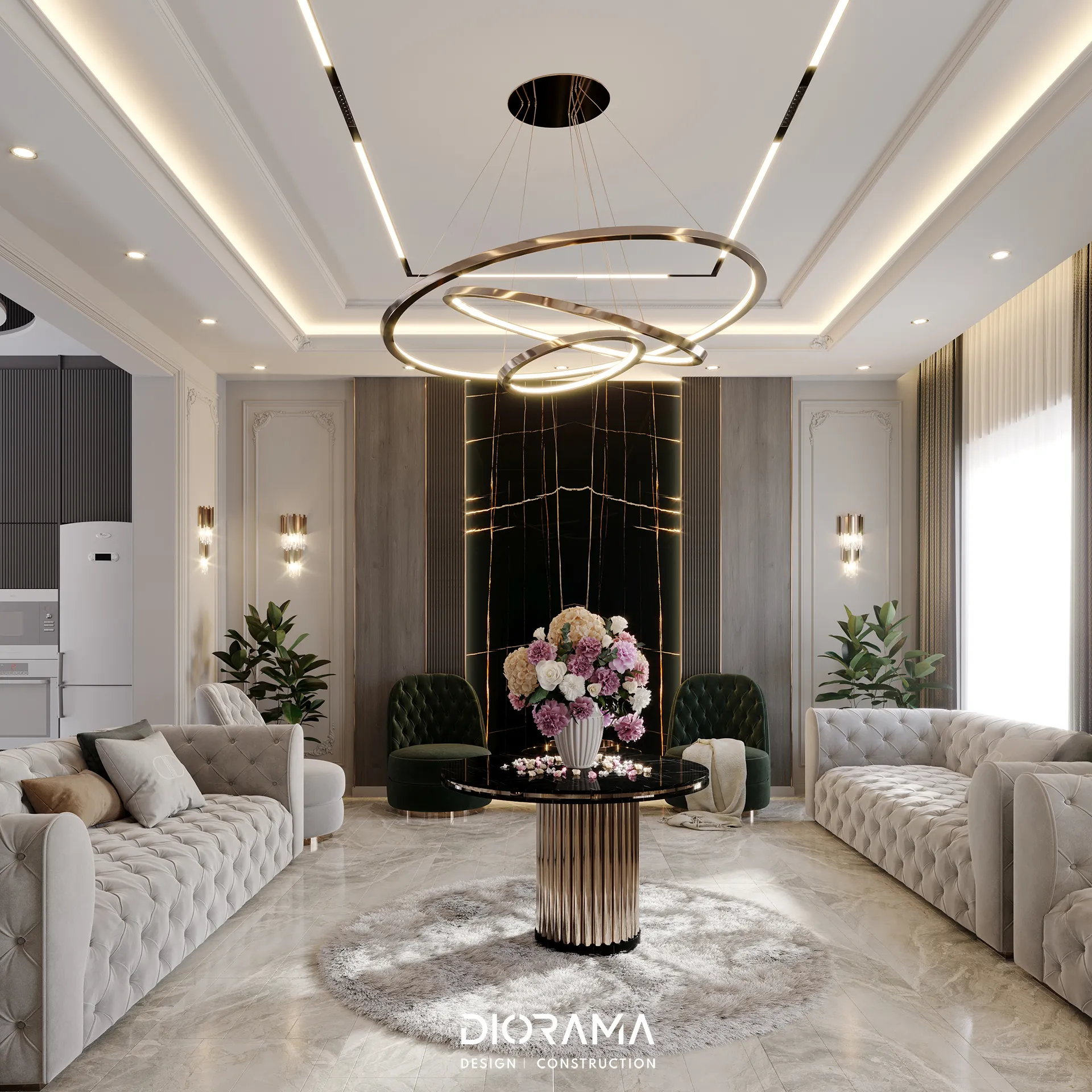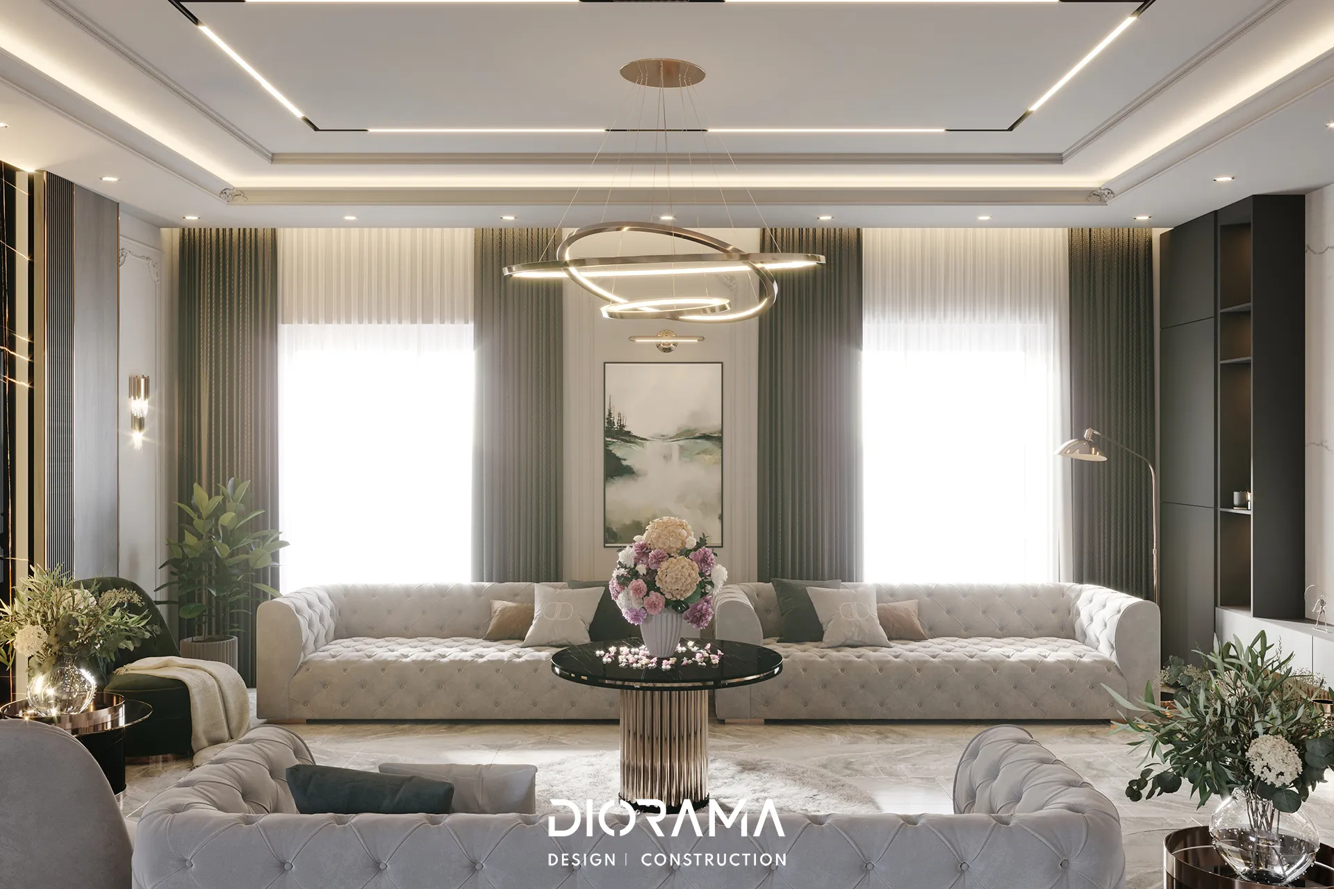 The Aram City Villa, designed by Diorama, is an elegant residential retreat situated in the prestigious Aram City area of Erbil. this villa exemplifies contemporary luxury with a design that harmoniously blends modern aesthetics with functional living spaces.