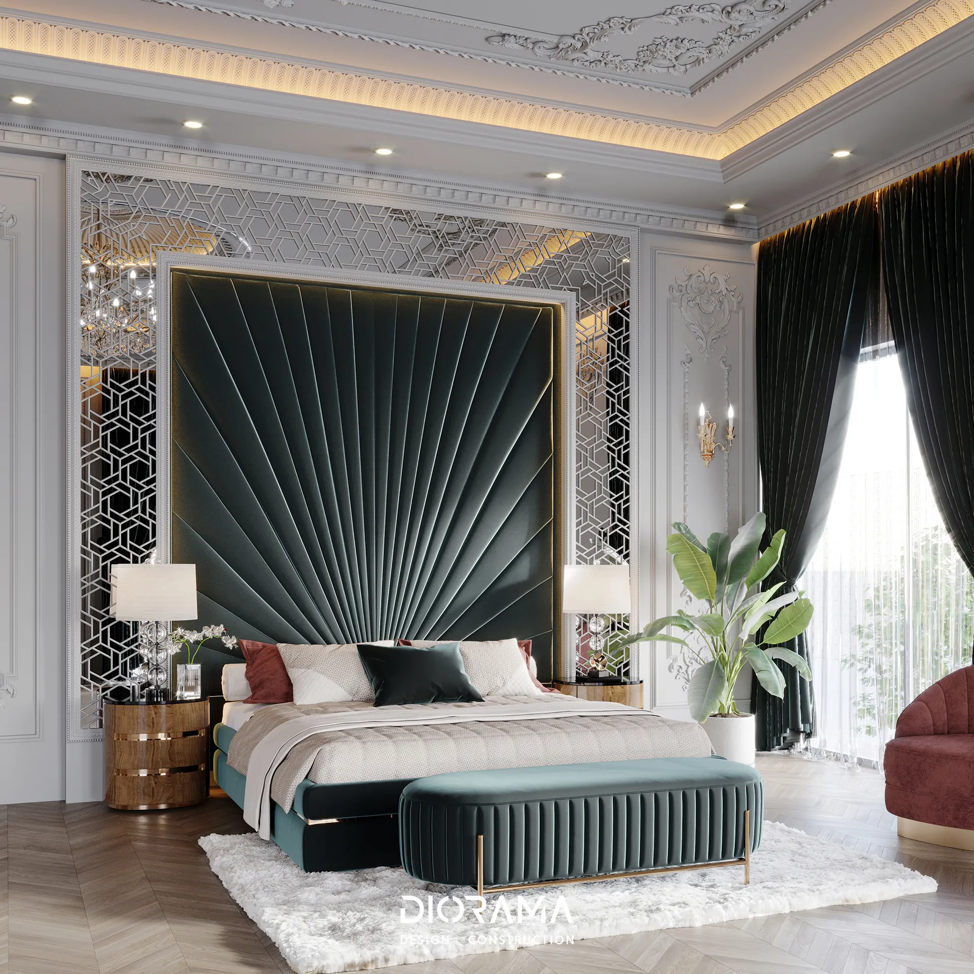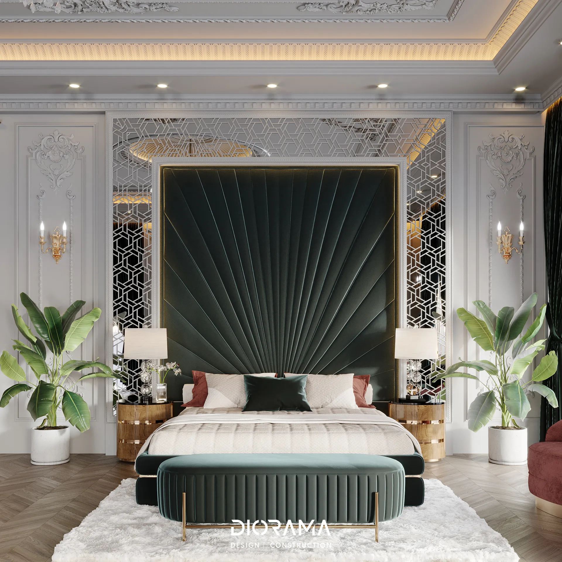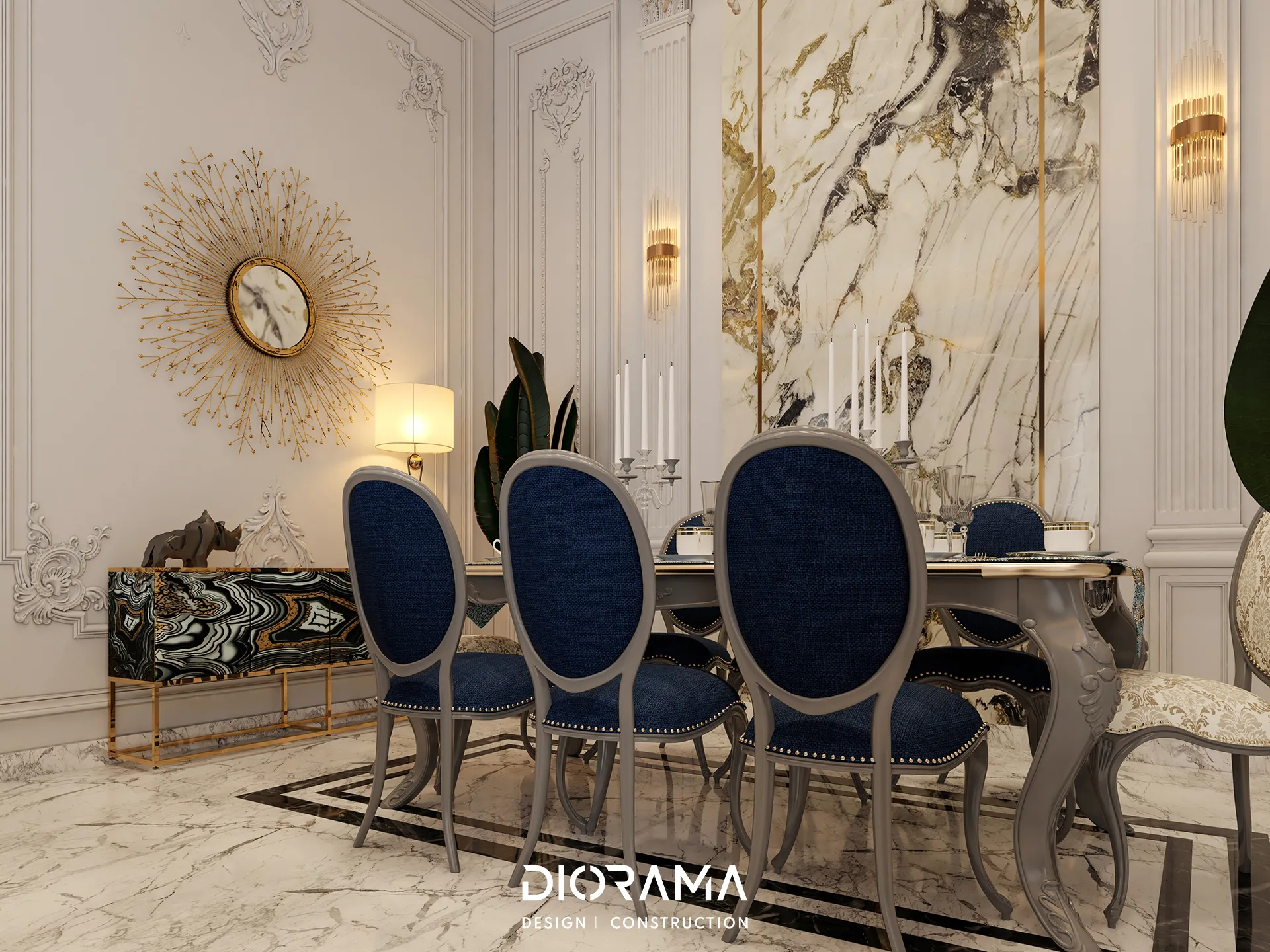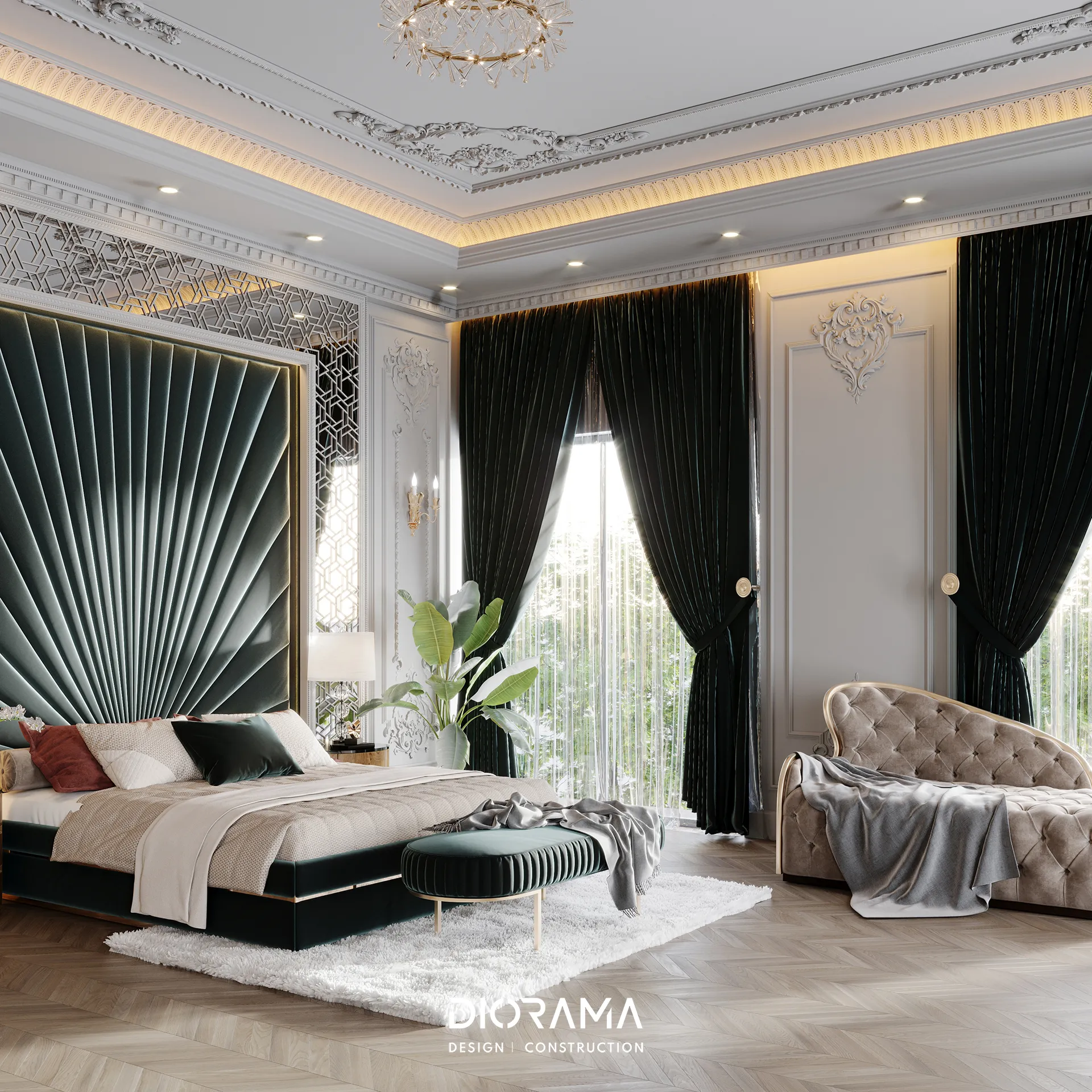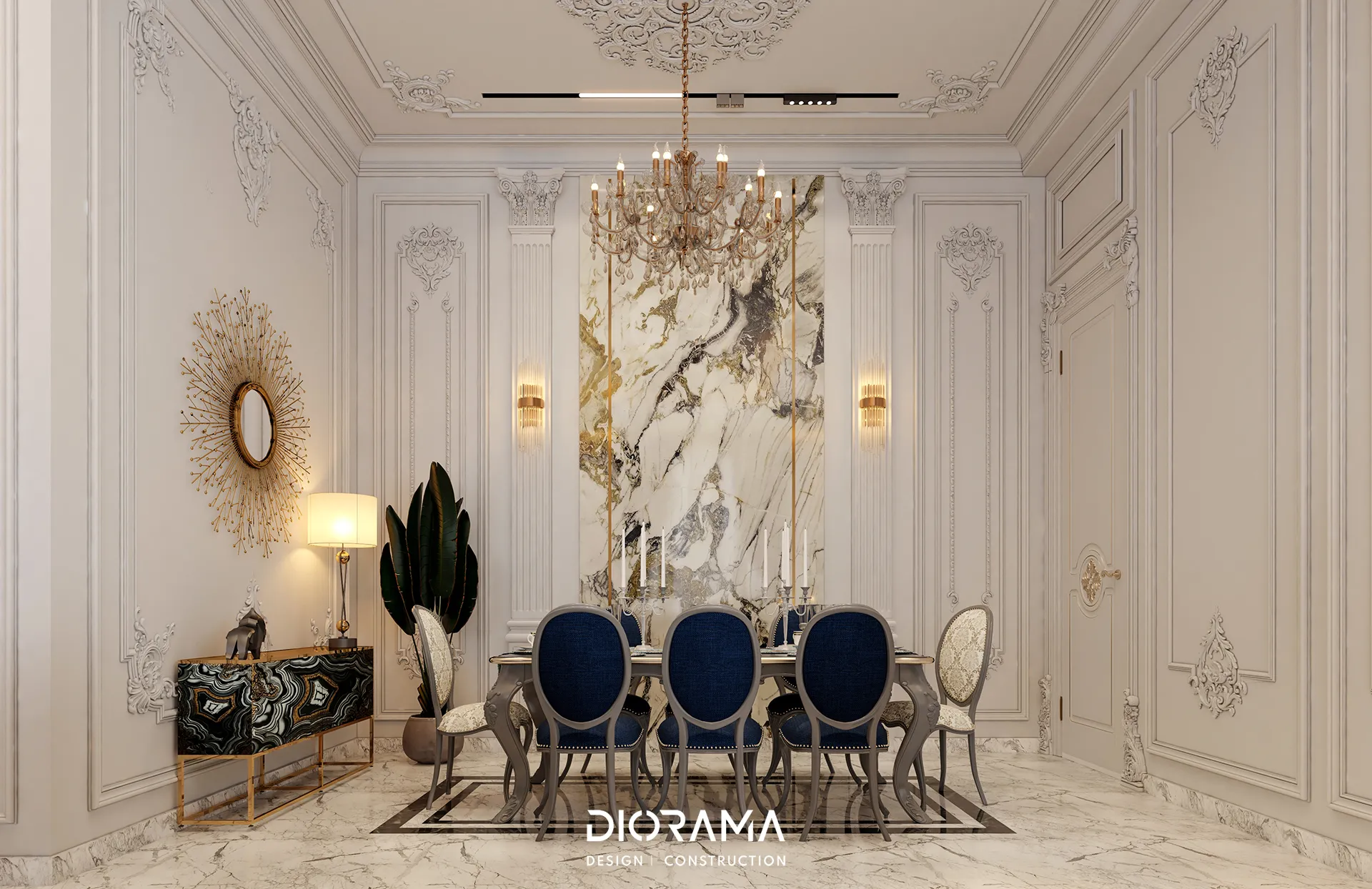 The classic villa in Dubai City, Erbil, designed by Diorama, stands as an epitome of luxury and elegance in the residential category. Spanning 1200 square meters, the villa's exterior design exudes timeless sophistication, blending traditional architectural elements with modern touches that create a grand and inviting facade.